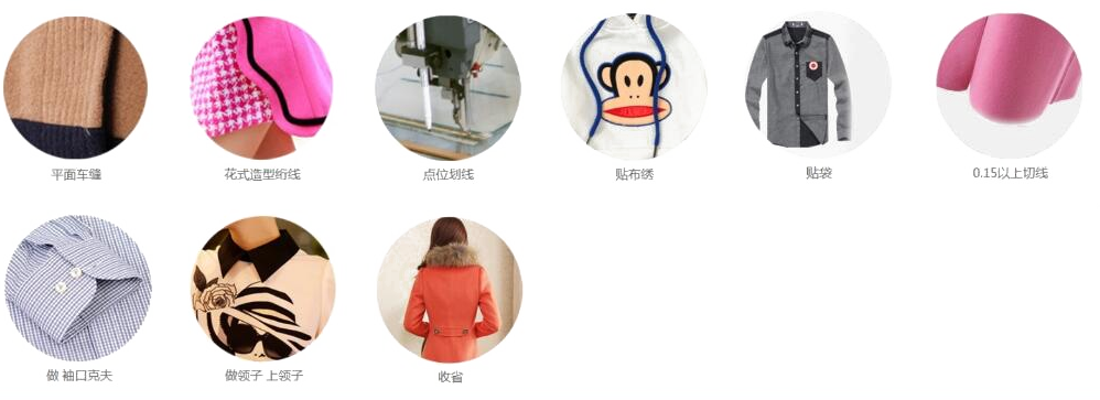 7、花式造型線縫制:正圓、橢圓、S型、轉(zhuǎn)角線等各類花式線的縫制。遠(yuǎn)超手工縫制速度,品質(zhì)更高。
